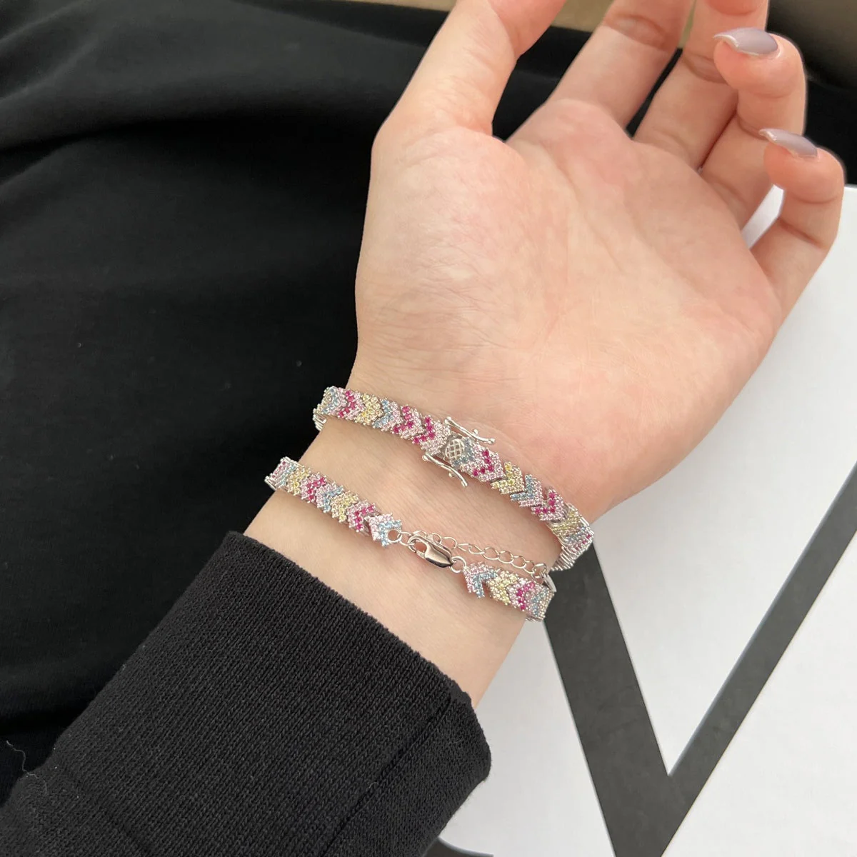 New Trending S925 Sterling Silver/Rhodium One Piece Jewelry Bracelet Chain For Women Luxury Zircon